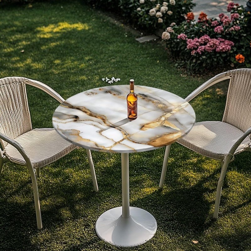 Garucesta Cocktail Table Cloth 24 x 24 Inch Round Cocktail Tablecloth with Elastic Edged Fitted Spandex Small Round Table Topper Covers for Picnic Party Bar Pub, Marble Gray White Golden