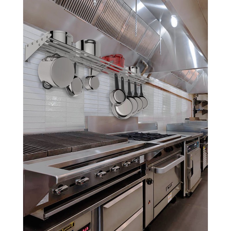 - High Weight Capacity: With a sturdy 210lb capacity, this wall shelf pot rack provides secure and reliable storage for a variety of kitchen essentials.