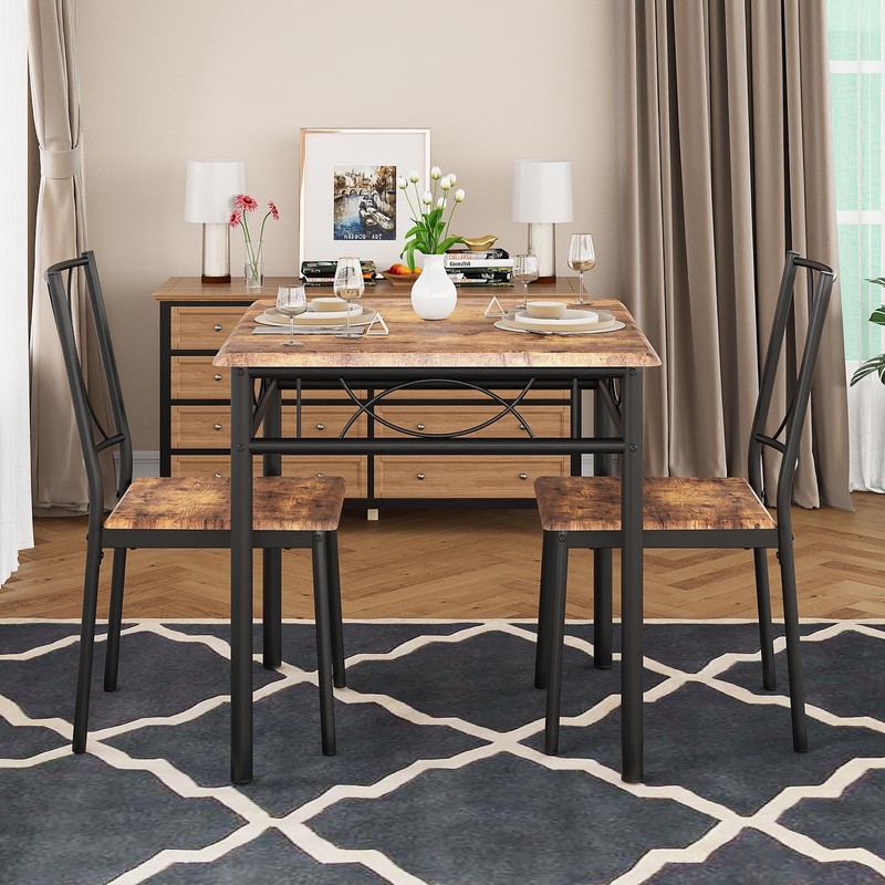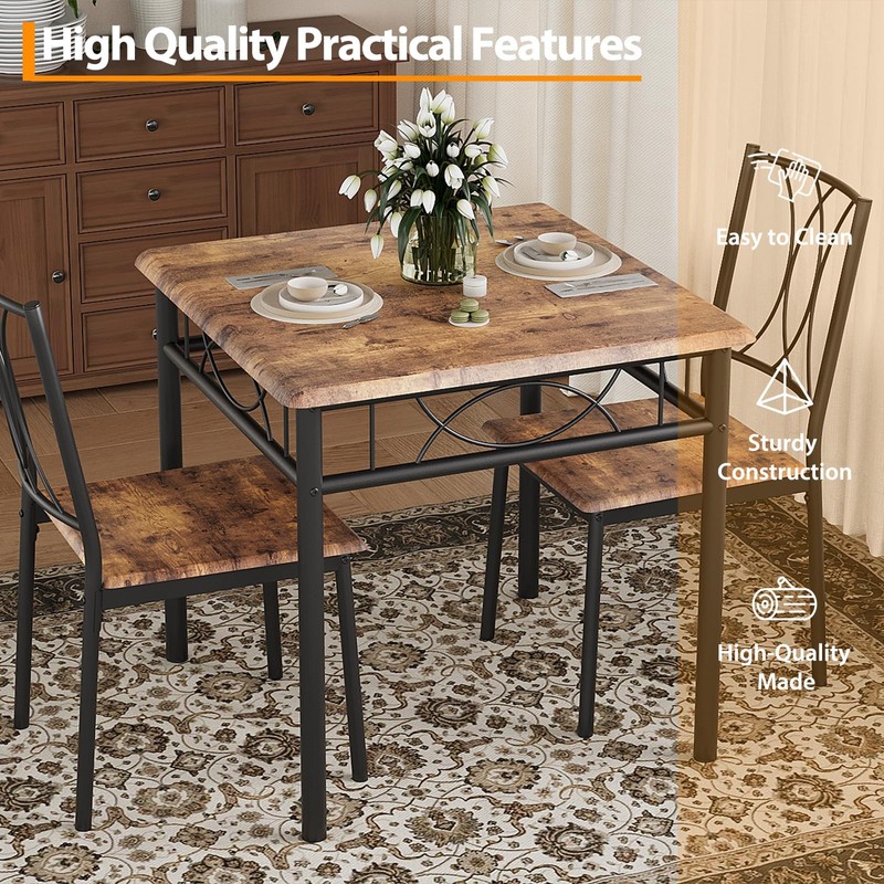 - Modern Rustic Style:Featuring a retro-brown finish with sleek metal accents, this set blends rustic charm with contemporary flair. Its versatile design complements kitchens, dining rooms, cafes, or small apartments beautifully.