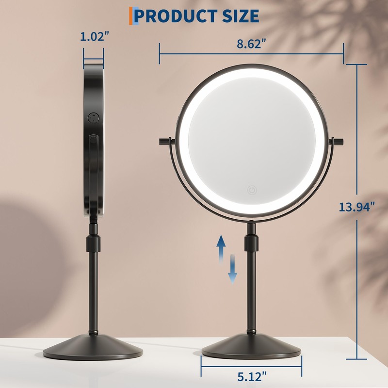 - 【Customizable Height Vanity Mirror】This vanity mirror is designed with a telescopic stand for the best viewing position on any dressing table. Whether you're sitting at a vanity, standing in a hotel bathroom, or travelling with your beauty supplies, this height-adjustable design ensures ergonomic comfort.