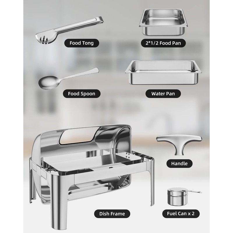 - 【Premium Stainless Steel Construction】This roll top chafing dish buffet set is meticulously crafted from top-grade stainless steel, delivering exceptional durability and easy cleaning for long-lasting use.