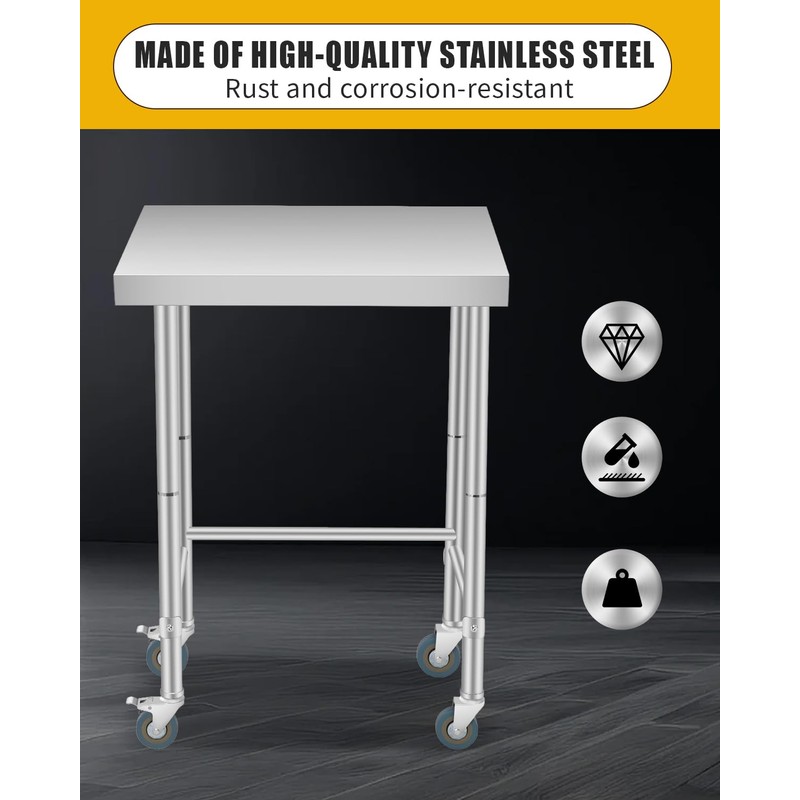 - FIND YOUR IDEAL SIZE: Offering five practical dimensions (16x24", 18x24", 18x28", 18x32", and 18x36"), our stainless steel prep tables adapt to any workspace.Choose fixed legs for stationary stability or lockable casters for mobility, perfect for tight kitchens or large professional spaces.