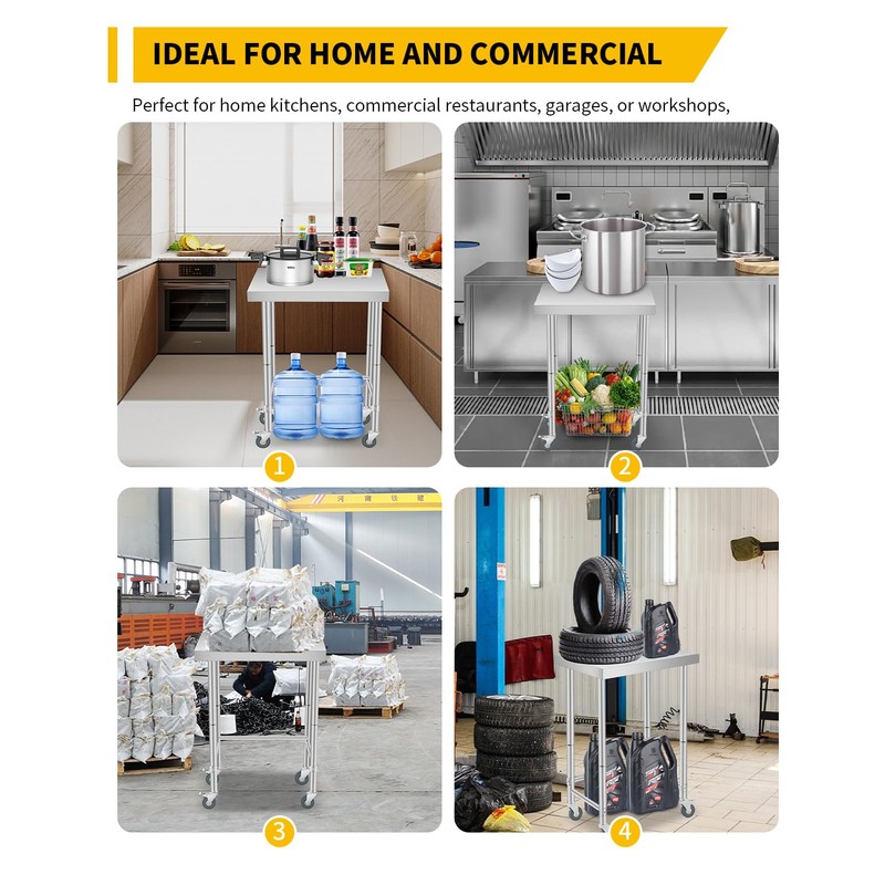 - ULTIMATE UTILITY TABLE: This heavy-duty stainless steel table handles heat, oil, and chemicals with ease. Perfect as a kitchen prep table, workshop bench, or mobile catering station, its durable, easy-clean design works equally well in food service, industrial, and outdoor settings.
