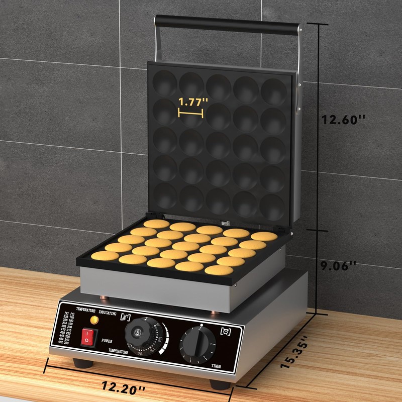 - PRECISE TIME AND TEMPERATURE CONTROL: Equipped with a waterproof temperature selector and a timer controller, you can precisely control the temperature and working time to make delicious mini Dutch pancakes, with a temperature range from 122℉ to 572℉ and a time range from 0 to 5 minutes.