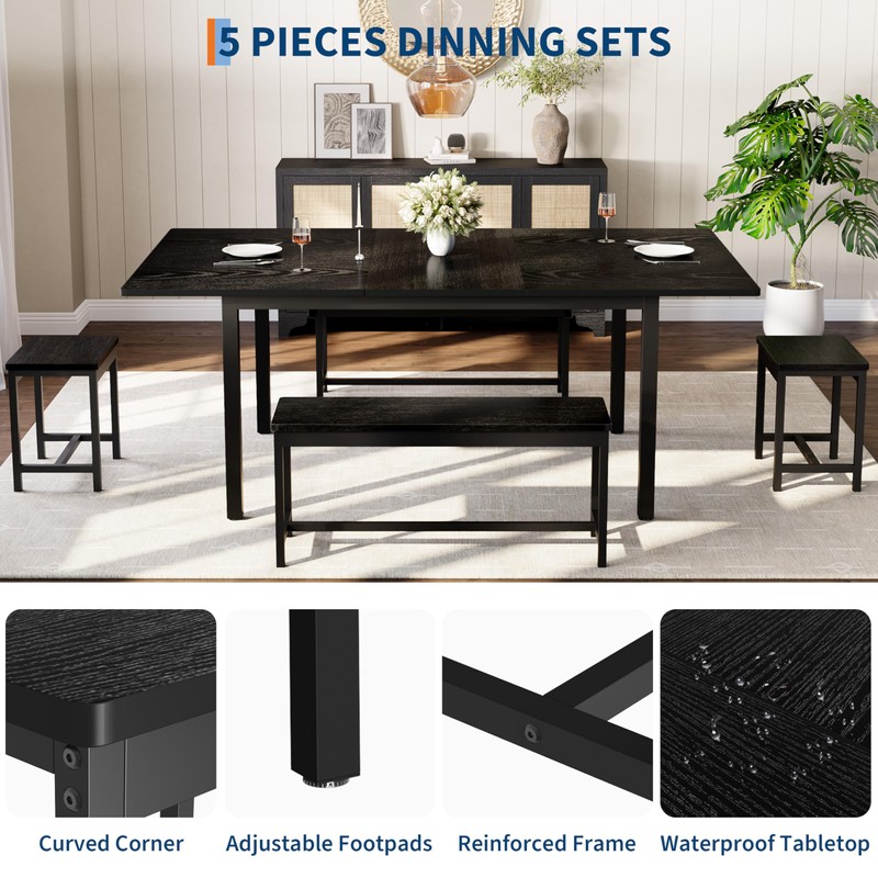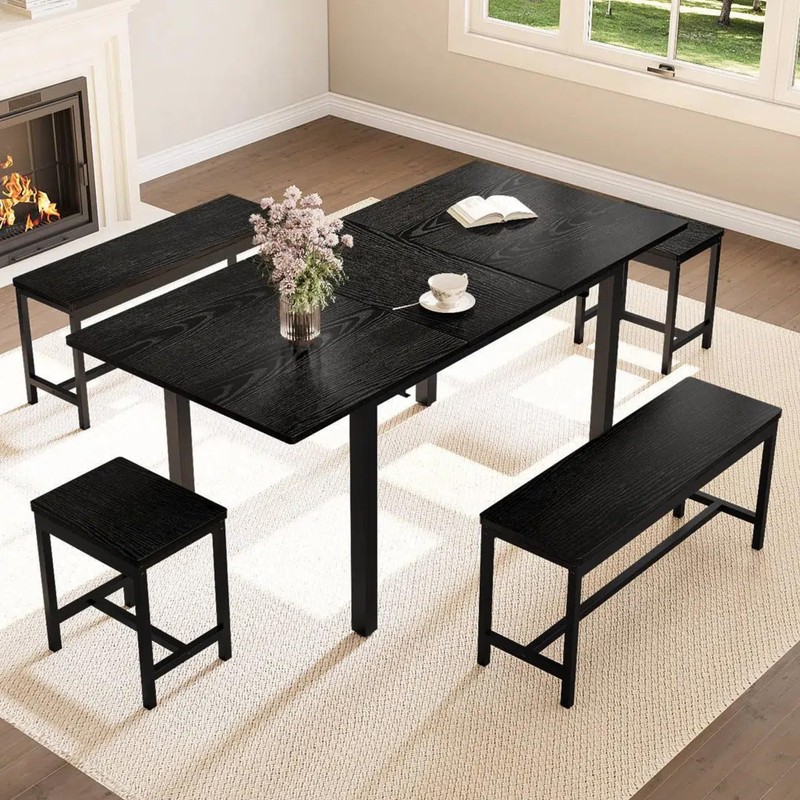 - Compact Kitchen Table with Hidden Storage: Tuck stools and benches neatly under the table to save space. Perfect as a kitchen table or dining room table set for 4, it keeps your home clutter-free while ready to host friends and family