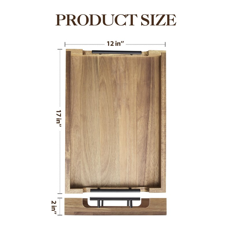 - 17x12 Inches Food Serving Tray: With dimensions of 17" x 12", this acacia wood tray provides generous room for serving meals, beverages or showcasing decorative pieces. It's ideal for use as a tray for the bed or ottoman for enjoying breakfast, charcuteries board for dinner room