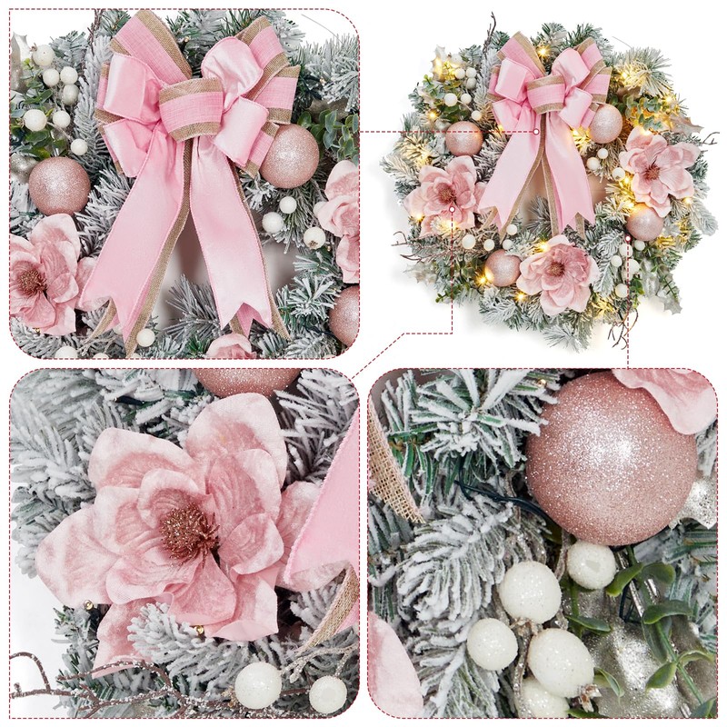 - Perfect Size and Design: Command attention with a perfectly proportioned 24-inch wreath, designed to make a statement without overwhelming your space. Its generous size and pink elements create a luxurious backdrop for the dazzling decorations, ensuring it becomes the instant focal point of your holiday decor on any door, wall, or mantel