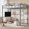 - 【Durable and Sturdy Construction】This loft bed is made from a heavy-duty metal frame with tight metal slats and features a V-shaped back support for added stability. Every component is securely fastened with heavy-duty screws, ensuring a wobble-free experience. With a 400 lbs weight capacity, this loft bed is designed to support kids and adults. No need for a box spring – just place your mattress directly on the slats