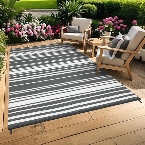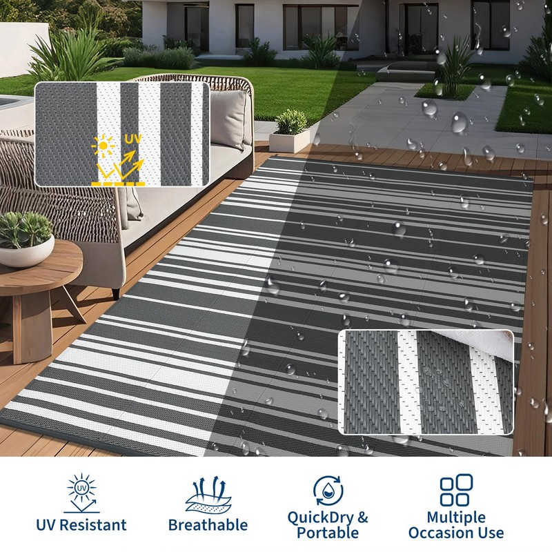 - 【Modern Reversible Style】: Upgrade any outdoor space with this large outdoor rug featuring a stylish modern stripe design. The reversible plastic straw rug offers two chic looks, making it perfect as a patio rug, deck rug, or outdoor carpet for balcony