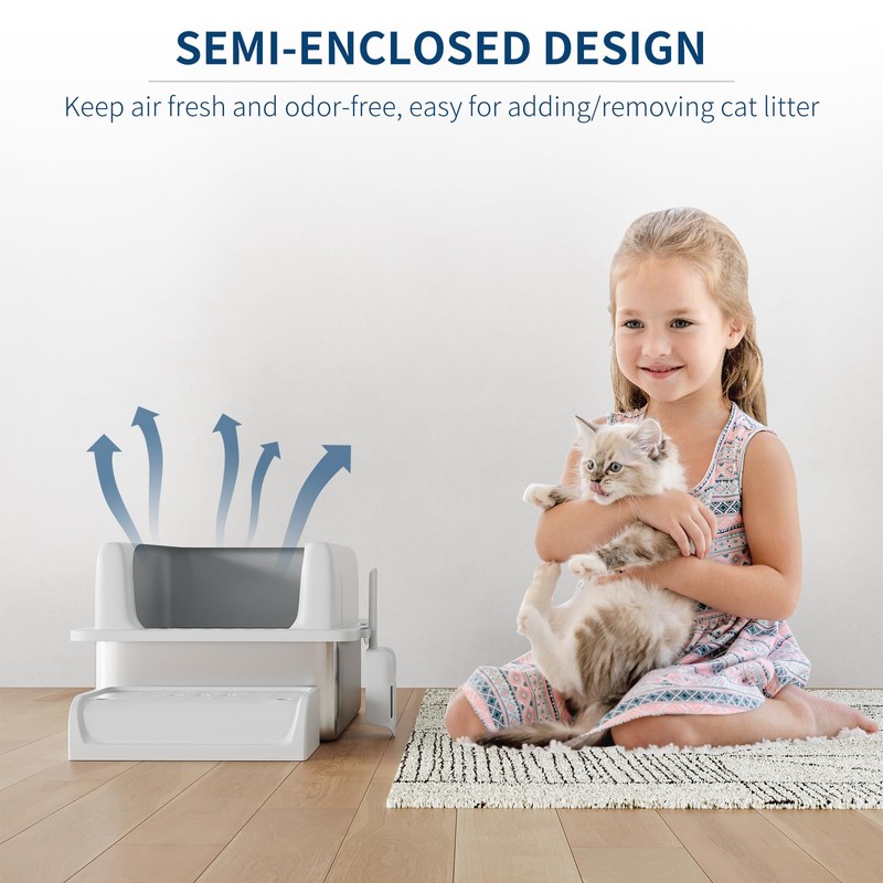 • Simplified Maintenance: Includes a litter scoop for easy cleaning. The XL size holds up to 37 liters of litter, providing enough capacity for up to 30 days of use for one adult cat—perfect for busy schedules or travel, so you can worry less about frequent litter changes.