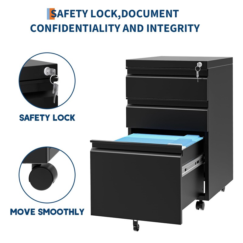- Secure Storage: Equipped with a reliable lock, this rolling file cabinet ensures your important files and personal items are safe and secure.