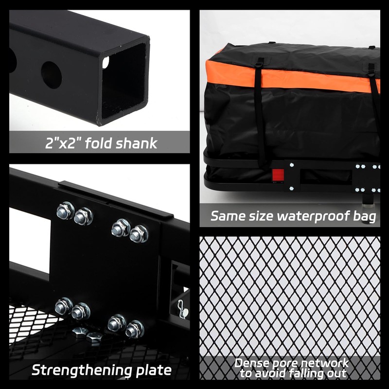 - [Versatile Compatibility] Designed to effortlessly fit any vehicle equipped with a 2" hitch receiver—including cars, SUVs, and pickup trucks—this hitch mount cargo carrier is the ultimate solution for hassle-free transportation of your gear.