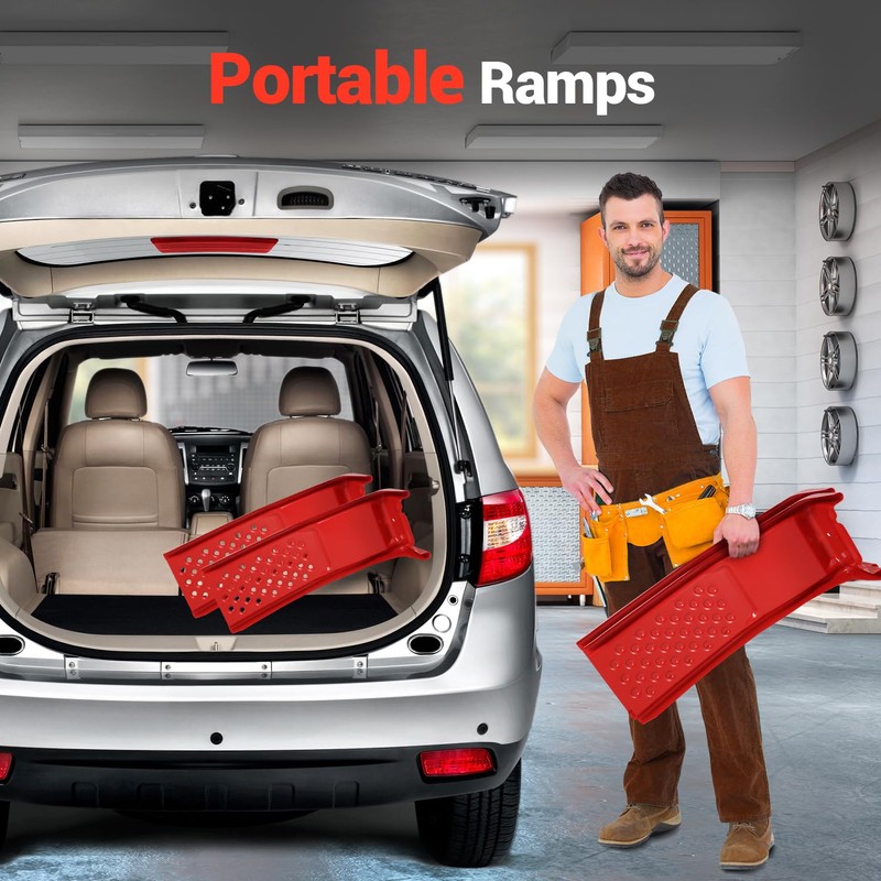 - Easy to Carry: Each ramp measures 35 inches in length, 13 inches in width, and offers a maximum lift height of 8 inches. Provides ample clearance for all your repair and maintenance needs.