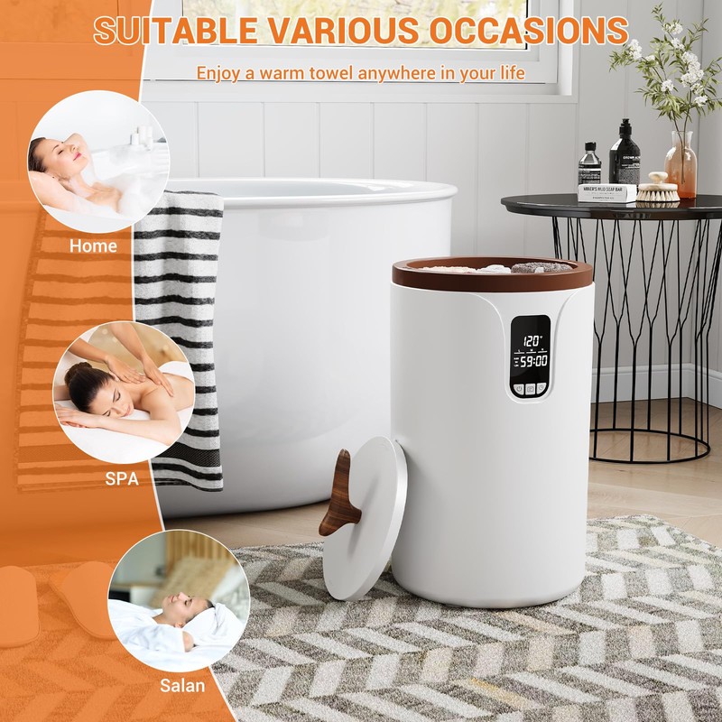 - Durable and Convenient: Crafted with a premium stainless steel inner lining that resists rust and wear, this towel warmer is built to last; it comes with a generous 1.8-meter power cord for flexible placement, enhancing convenience in any bathroom or spa setting