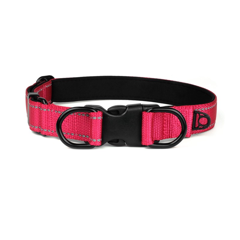 Garwor Reflective Dog Collar with Double D-Ring, Soft Neoprene Padded, Extra ID Tag D-Ring Attached, Buckle Adjustable Safety Nylon Pet Collars for Large Dogs(L, Hotpink)