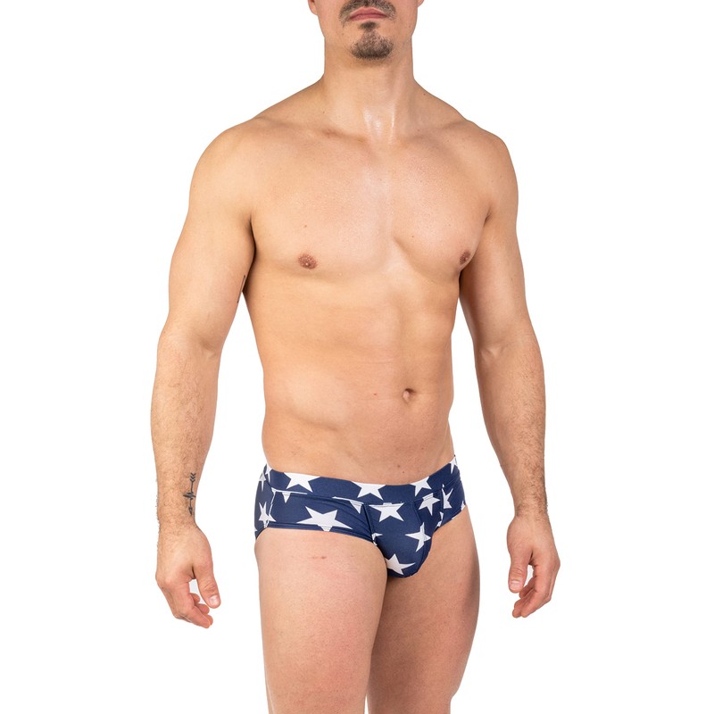 Gary Majdell Sport Men's Hot Prints Cheeky Brief Bikini Swimsuit (Navy Stars, X-Large)