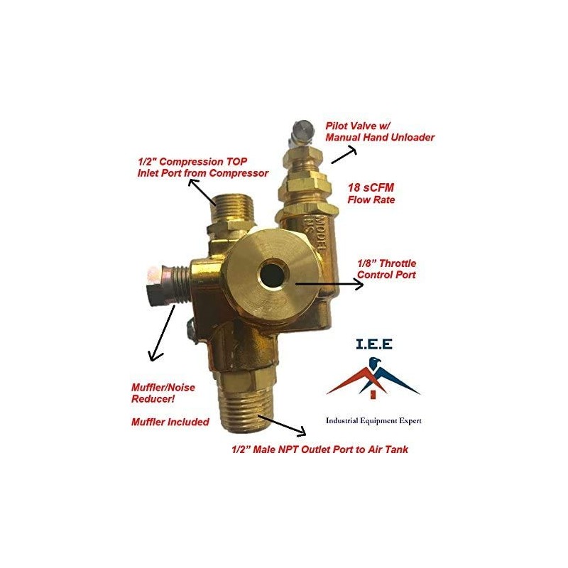 - GAS Air Compressor Pilot check valve unloader valve combo 95-125 PSI NSG7 1/2" Compression TOP Inlet x 1/2" Male NPT outlet 18cfm