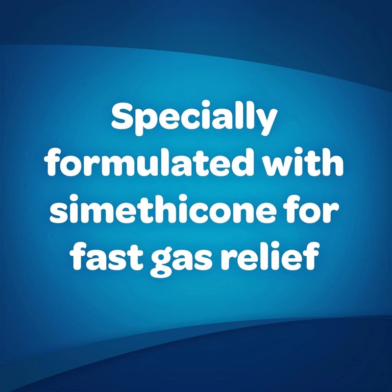 - Contains 125 mg of maximum-strength simethicone for fast relief of gas, bloating and discomfort