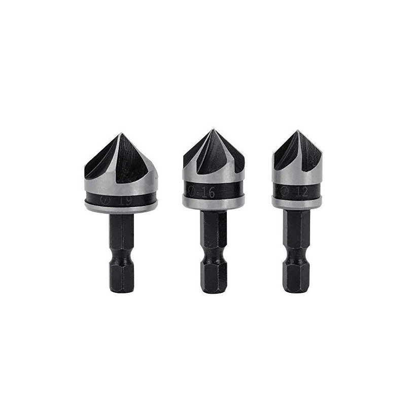 Gasea 3pcs 1/4 Inch Hex Shank 5 Flute 90 Degree Chamfering Countersink Drill ...