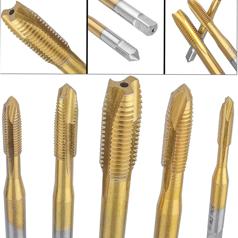 Gasea 5pcs Spiral Point Tap Set, HSS Titanium Coating Threading Tap, Straight...