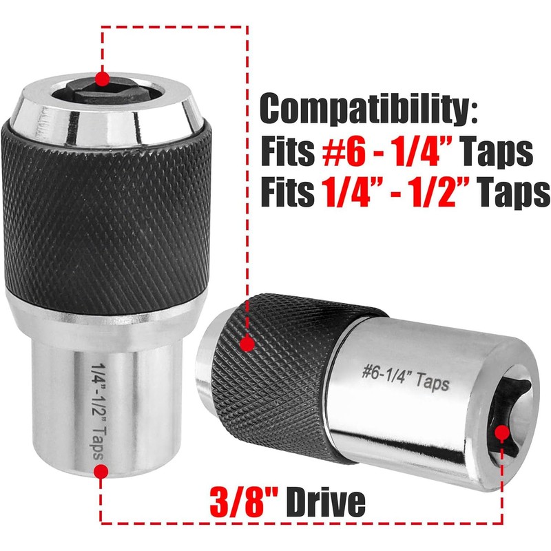 Gasea Adjustable Tap Socket Set, 2Pcs Tap Socket Adapters 3/8" Drive Tap Holder Tapping Socket Threading Tool for Tight Workspaces, Fits Taps #6-1/4" and 1/4"-1/2"