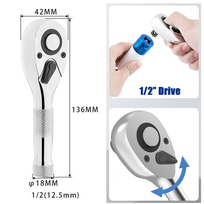 - HIGH-QUALITY MATERIAL: 1/2-Inch Drive small ratchet is made of premium chrome alloy with a polished chrome finish for long-lasting durability.