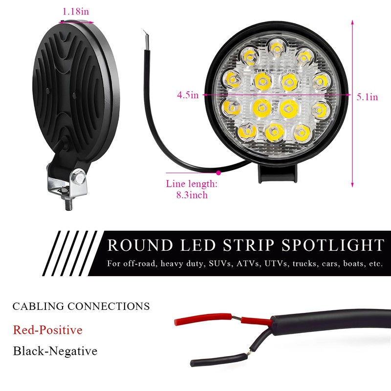 - 【14 Super Bright LED Chips】: Our car LED light bar is made of advanced 14 LED chips, providing 2000LM, 6000k super bright white light. The LED floodlight emits bright white light, plus the specially designed round light cup makes the lighting range wider. It can clearly illuminate your way in the dark, bringing you a safer and more comfortable driving experience.