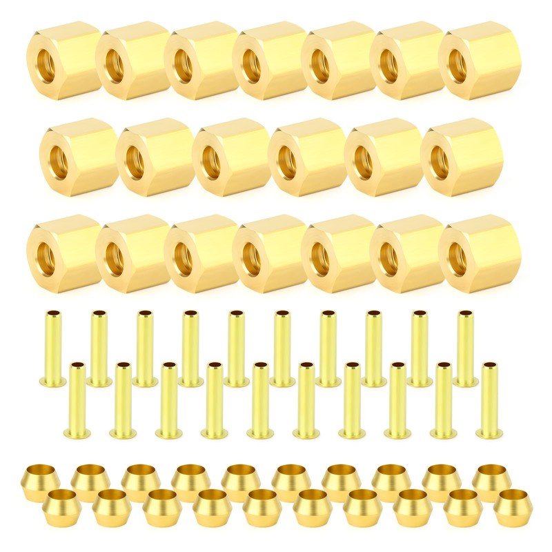 - Package Include:20 x 1/8" OD Brass Compression Insert,20 x 5/16" OD Brass Compression Sleeve Ferrules,20 x 5/16" OD Brass Compression Ferrule head