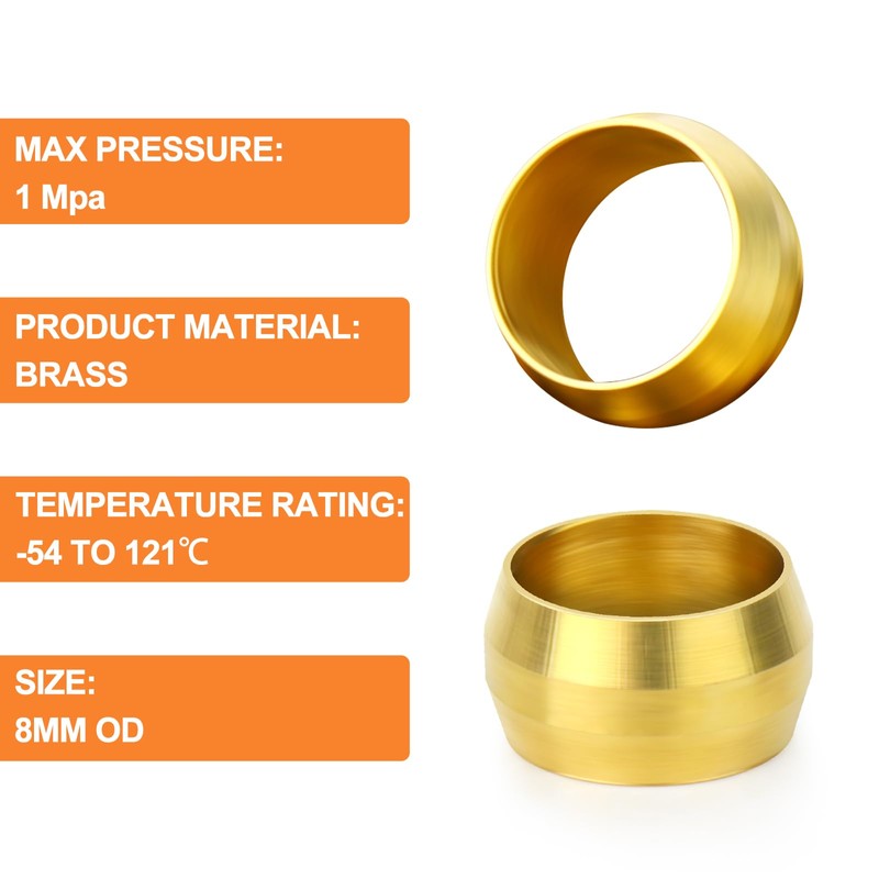 - Package includes: 8 mm OD 100 pieces brass compression sleeve ferrules