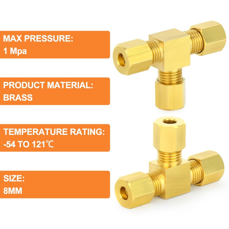 • Package includes: 10 mm x 10 mm x 10 mm tube OD 2 pieces brass compression Union Tee Tube Fitting
