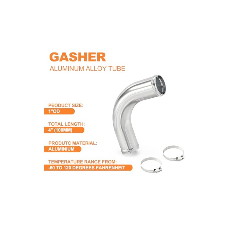 GASHER GASHER 1PCS 90 Degree Elbow Aluminum Alloy Tube 1"OD, Leg Length 4" (100mm) With Bead Roll, Intercooler Pipe For intake and cooling systems