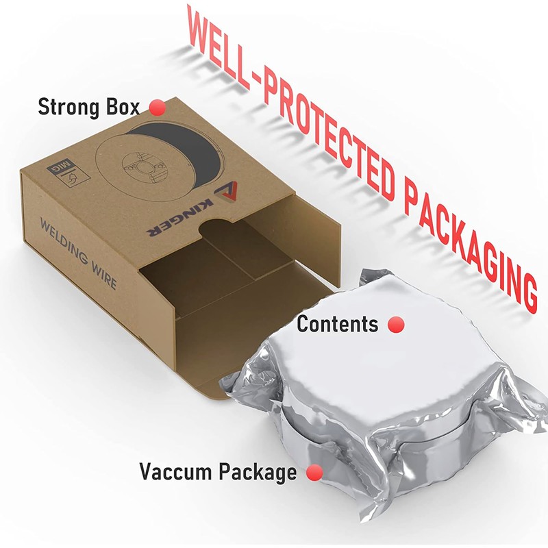 - PREMIUM PACKAGING FOR PROFESSIONALS: Every 2-Pound Spool of Kinger welding wire is thoughtfully vacuum-sealed, providing excellent waterproof and moisture-proof protection. This meticulous packaging guarantees that welders receive the highest quality performance from the MIG weld wire, ensuring optimal welding results