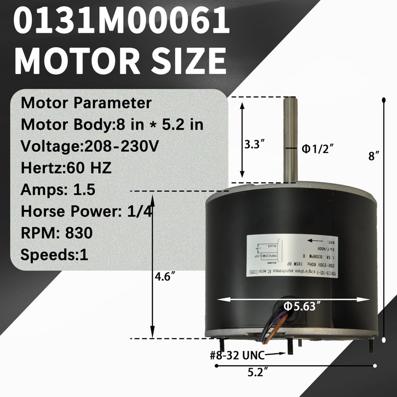 - POWERFUL MOTOR: 0131M00061SP condenser motor with a 1/4 horsepower motor, condenser fan motor delivers strong and efficient airflow, effectively cooling your space while maintaining low noise levels. Its robust construction withstands harsh outdoor