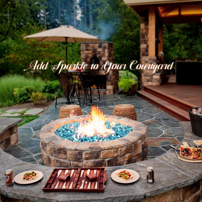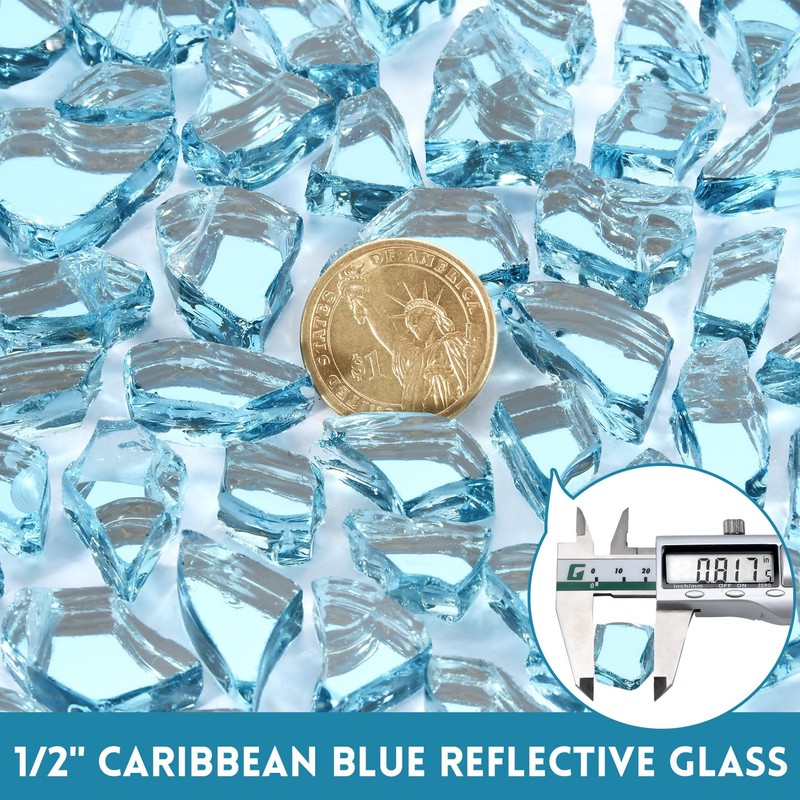 - FIRE GLASS : adds a unique veneer of brilliance to any common fire pit. 10-Pound, 1/2 Inch Fire Glass Drops, Caribbean Blue Reflective