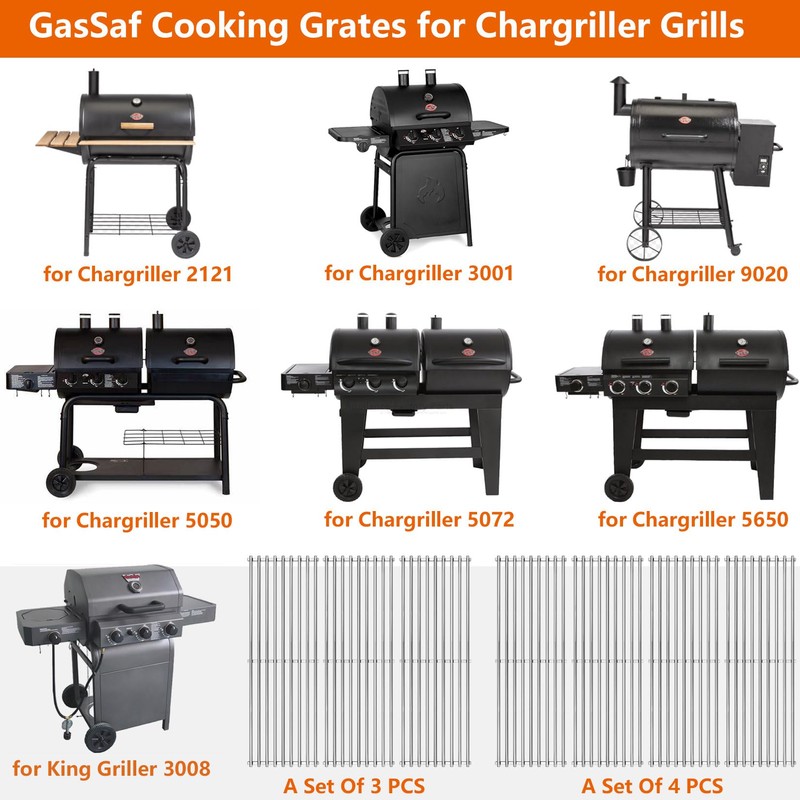 - 【Cooking Grates for Chargriller 3001 5050】19.75" cooking grates fit for char-griller 2121, 2123, 2222, 2828, 3001, 3008, 3030, 3072, 3232, 3725, 4000, 4001, 4008, 4208, 5050, 5072, 5252, 5650, 9020, grill grates replacement parts for chargriller duo 5050 BBQ grill