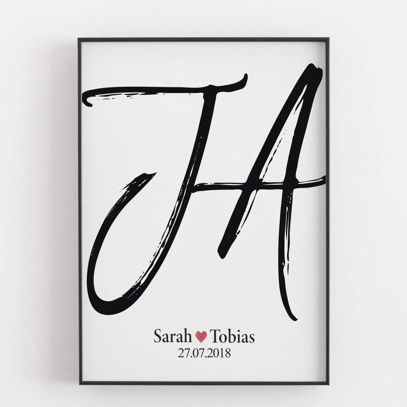 Gastgeschenk zur Hochzeit für Brautpaar Hochzeitsgeschenk personalisiert Geschenk persönlich Kunstdruck Bild Hochzeitsbild Ja Mann Frau ungerahmt