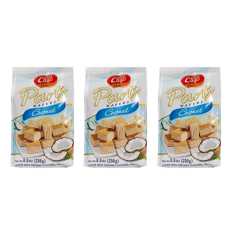 Gastone Lago Party Wafers Cookies With Coconut Cream Filling 8.82 oz, 250g (Pack of 3) (Coconut, 3-Pack)