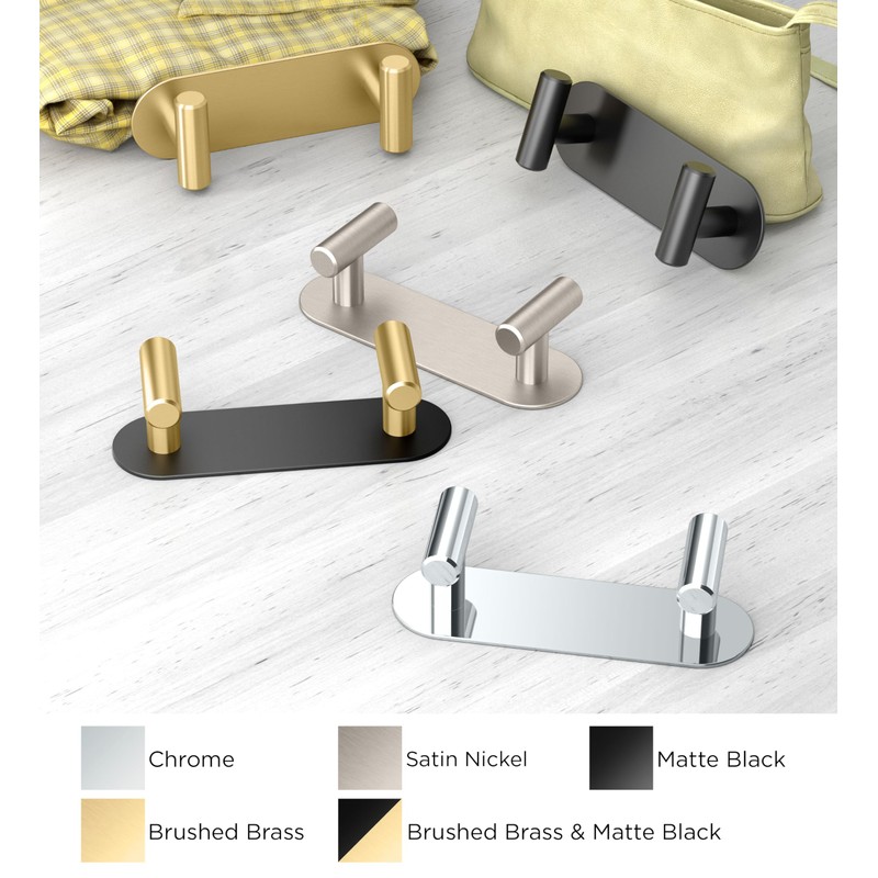 Gatco 1291MXB Latitude II, All Modern Décor, Double Hook, Matte Black Brushed Brass/Wall Mounted Towel and Robe Double Hook for Bathroom / 2-Hook with 6.50" W Back Plate