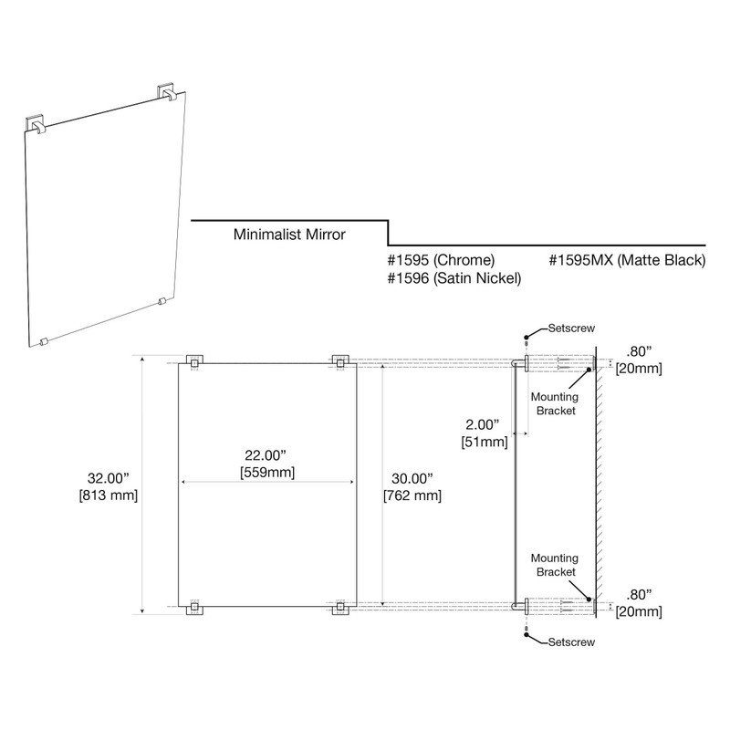 Gatco 1595 Elevate Fixed Mounted Minimalist Mirror, Chrome, 30"H