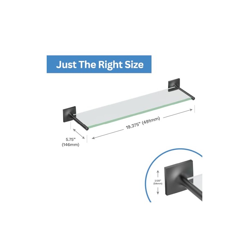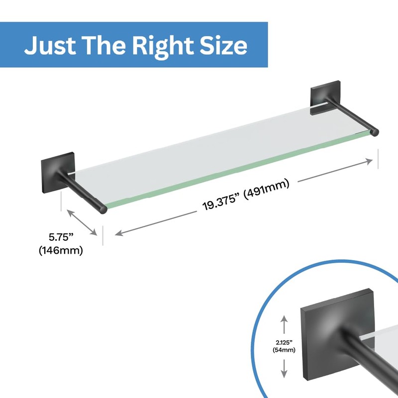 Gatco 5586MX Waterline Glass Shelf, Matte Black