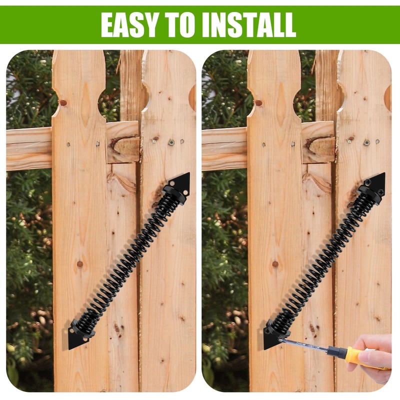 - Easy to Install: Install each side of the gate spring on the post and gate, then Place the adjusting part on the loose side and play a tightening role.NOTICE: Be careful not too tighten the screws if you are installing a vinyl fence