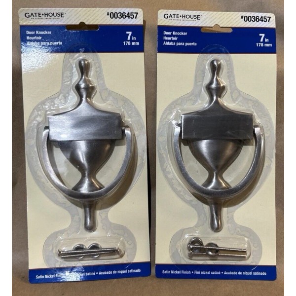 Gatehouse Gate House 7” Door Knocker - Satin Nickel Finish Modern Style Lot of 2