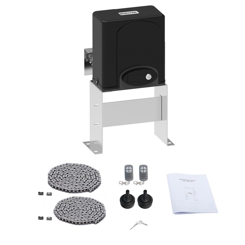 - POWERFUL GATE OPENER: SGO06-BLACK sliding gate opener is applicable to the type of slide gate which weight is less than 1200lbs, length less than 40ft. The drive mode adopts the sprocket and chain transmission. Power supply: 110-120V/60Hz; Motor power: 280W.