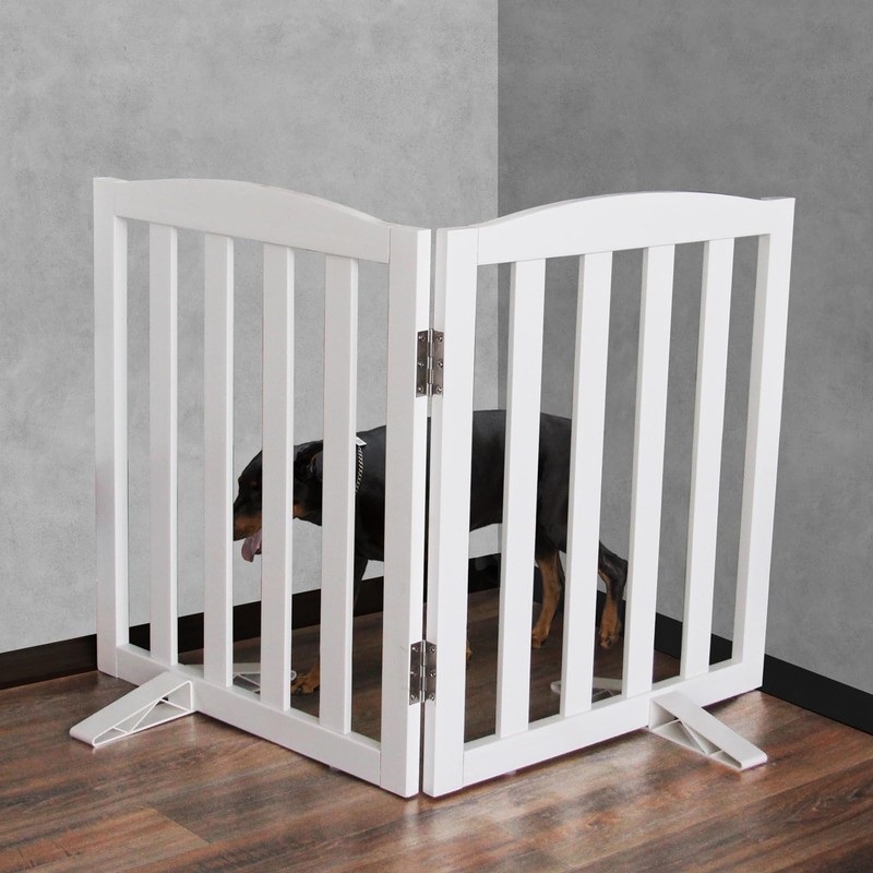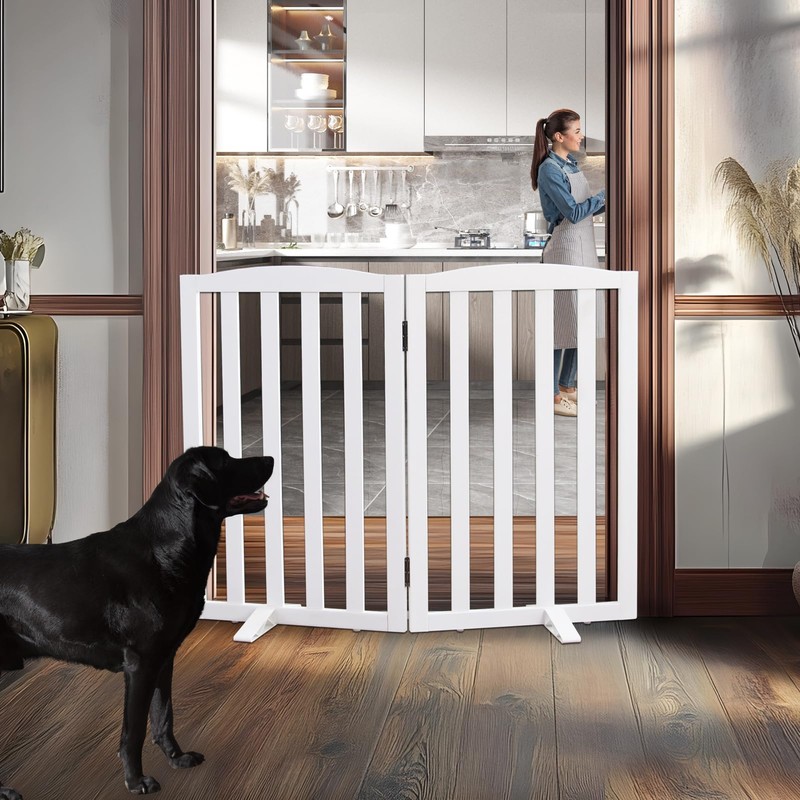 GATEZAOLU Freestanding Dog Fence Indoor for Doorways White Long Dog Gates for The House Stairs or Hallways, Foldable Pet Gate,Support Feet Included, Puppy Gate Cedar Wood,32 "Height-2 Panels