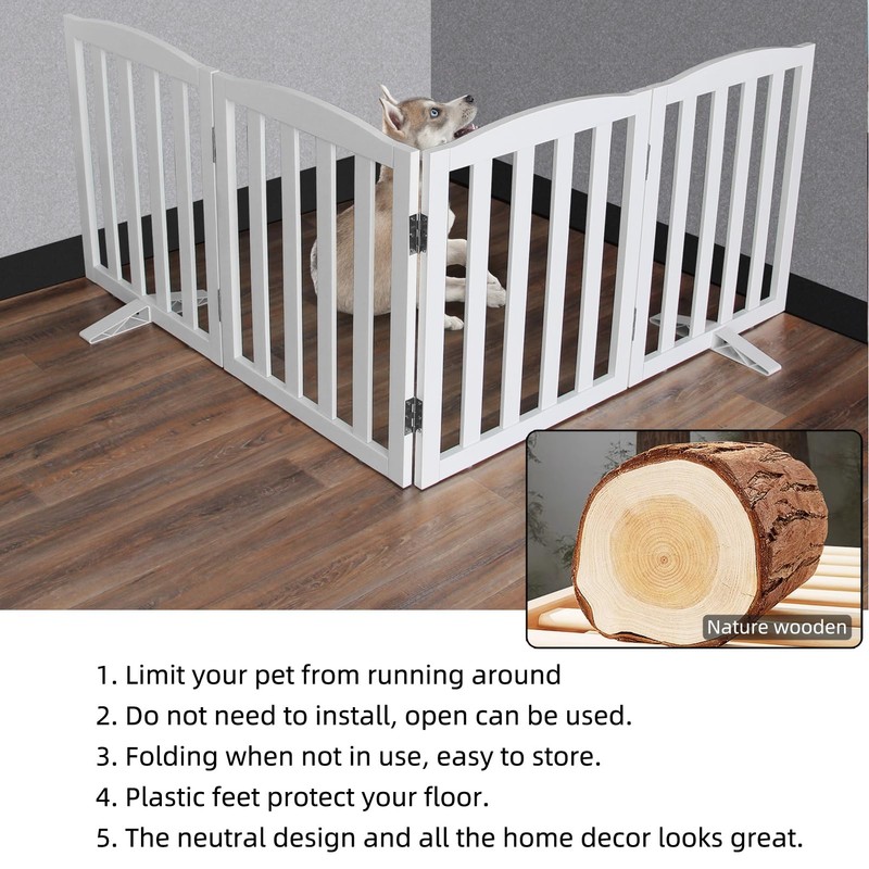 - 【Wooden Freestanding Pet Gate Material】 100% Cedar Wood , Cedar wood is known for its sturdy and durability,natural beauty ,sealed with special paint to keep wear-resistant and corrosion-resistant. Non-Slip Rubber Feet to protect your floor.