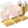 GATHER 350pcs Pink Plastic Plates - Disposable Plastic Dinnerware Set Include...