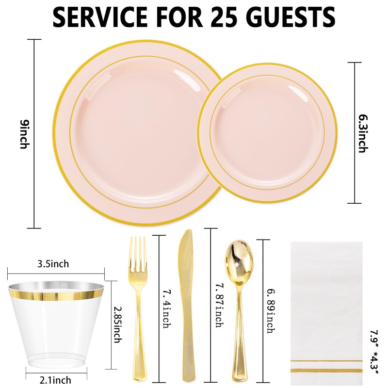 • Easy clean up: Say goodbye to post-party chaos! The pink disposable plates are the ultimate solution for hosts who want to focus on enjoying their event. Lightweight yet sturdy, these pink and gold plates are easy to transport and dispose of, making cleanup a breeze. Elevate your next celebration with the perfect blend of sophistication and convenience—because unforgettable moments deserve equally remarkable tableware.