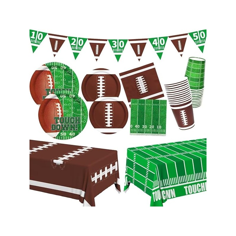 Gatherfun Football Party Supplies Kit Serve 24,Includes Dinner Plates, Dessert Napkins, Cups,Banner and Touchdown Tablecloth for Birthday Gameday Tailgate Decorations, Green (2023053002)