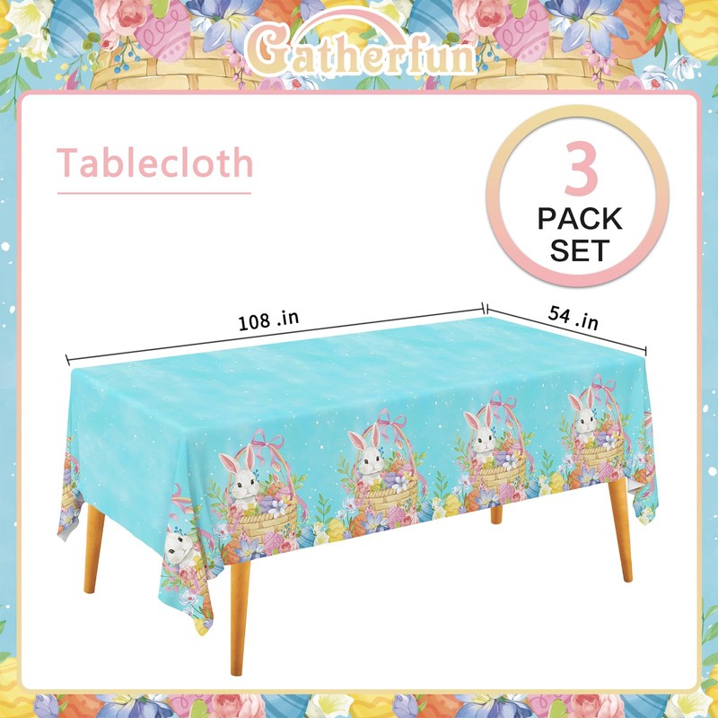 Gatherfun Happy Easter Party Supplies Set: Rabbit Decorations, Includes 3-Pack Rabbit Tablecloths for Easter Party Decorations, Disposable Table Covers 54 x 108 Inch