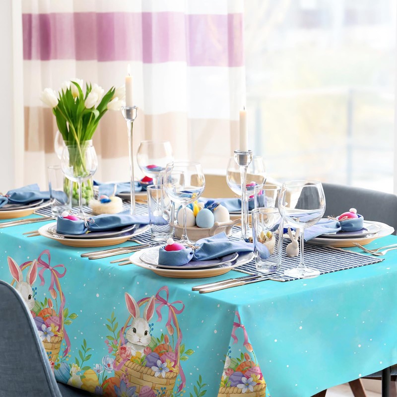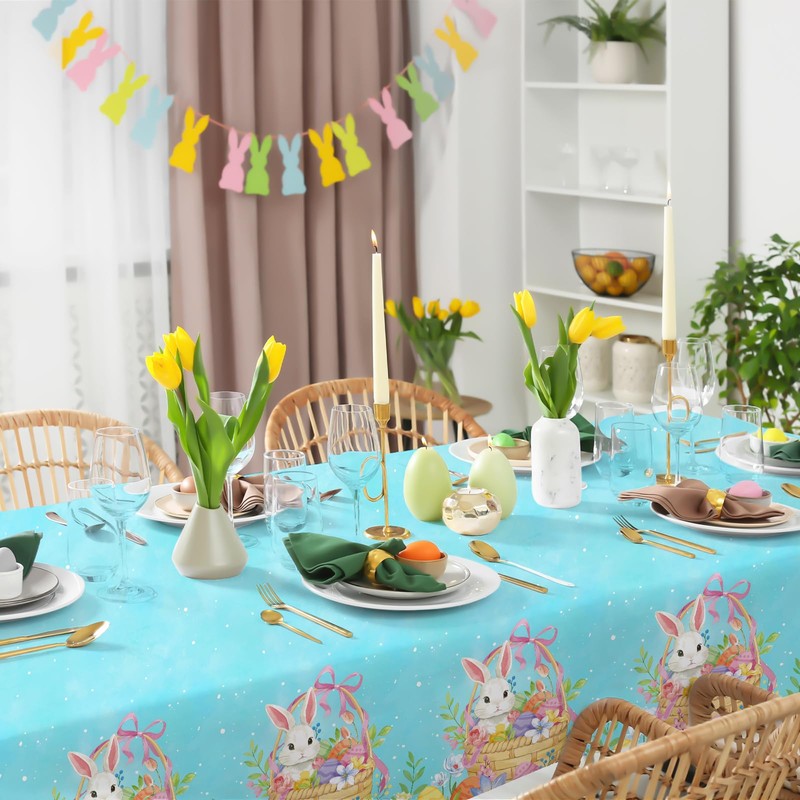 - 5. Charming Easter Tablescape: Achieve an adorable and cohesive Easter tablescape with our meticulously designed tablecloths. Their playful yet elegant patterns are sure to enchant your guests, making every meal served an integral part of your festive Easter party decorations and creating an atmosphere teeming with joy.